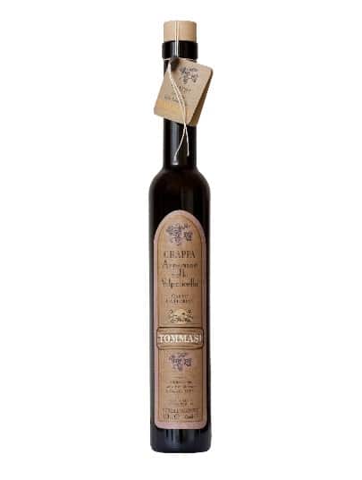 Grappa di Amarone Ca Florian Tommasi presents a dark golden color and a strong aroma of raisins, dried apricots and nuts, accompanied by a slightly seedy and robust taste with notes of raisin, dried apricots and nuts.