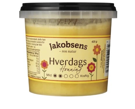 Jakobsens everyday honey is a mild honey with a pleasant sweetness and subtle notes of candied fruits. Everyday honey is perfect for everyday use and suitable for spreading on spreads, desserts and baked goods.