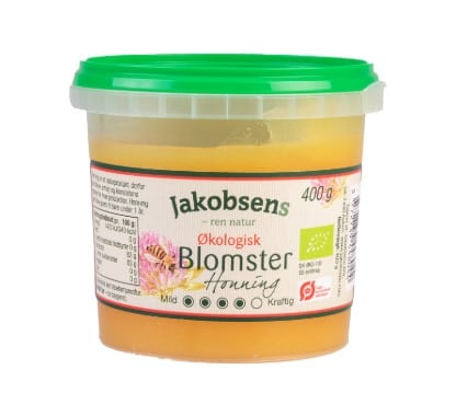 Jakobsens Organic Flower Honey comes from flowers grown in organic areas. The honey has a delicious spicy and slightly aromatic taste. Honey is a natural product, so color, taste and consistency may vary with each production.