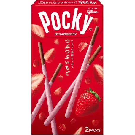 Tsubu Tsubu is a Japanese term for food containing chunks, and Ichigo means strawberry. This special type of Japanese Pocky is made in Japan according to the original recipe and presented in a beautifully designed bumper-sized box containing 2 individual packs. Each crunchy Pocky biscuit is made with chocolate and the frosting itself contains real strawberry flakes embedded in a creamy strawberry flavor coating with gaps at the ends so you can hold them without getting sticky fingers! The strawberry flavor is so realistic and vibrant.