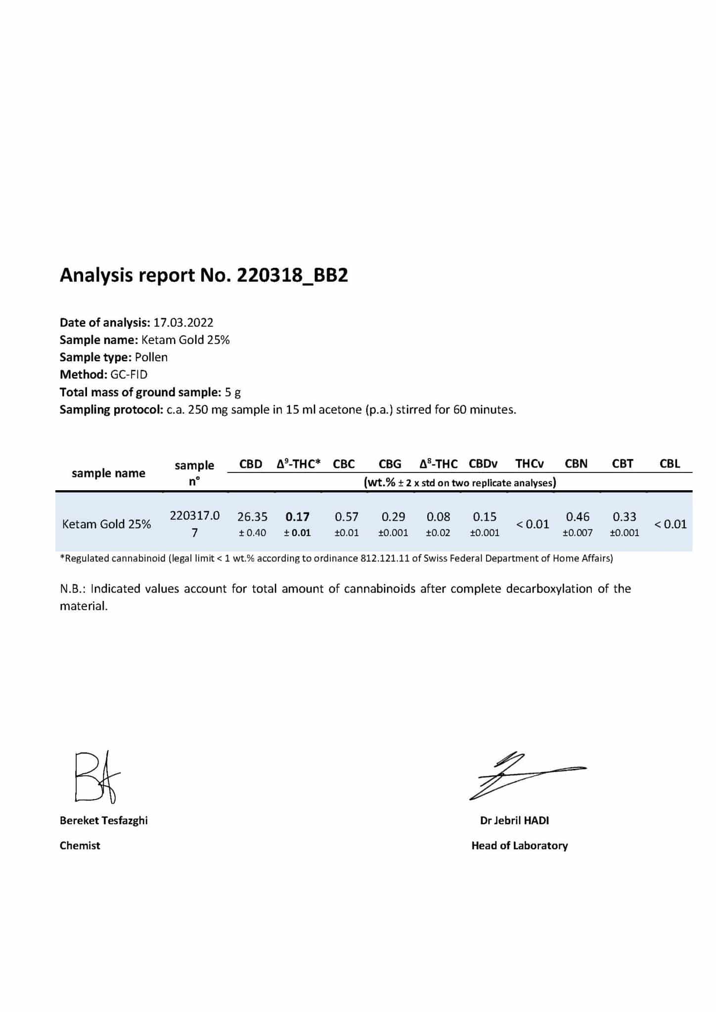 Hemp lump of the Ketama Gold variety. Contains up to 10% CBD and only 0.01% THC. The aroma is complex with berry-like notes.