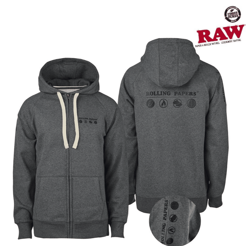 Raw Rolling Papers Hoodie Grey w/ zipper bags