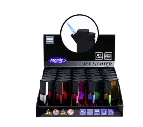 Atomic Wingman 2-Tone Metallic Jetflame er en genopfyldelig lighter med kraftig vindtæt jetflamme og flot tofarvet metallisk finish. Perfekt til både festival og daglig brug.
