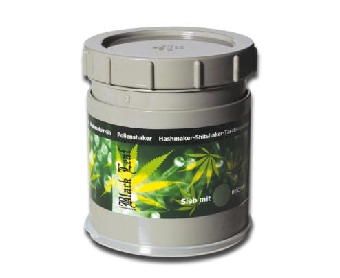 Ekstra stor hashmaker med 150µ (mikrometer) sigte til store lagre. Nem at bruge: Hæld materialet i, sæt det i fryseren i mindst 30 minutter, ryst, ryst, ryst og glæd dig så, glæd dig, glæd dig! For at forfine kan du bruge hashmakeren med 64µ.