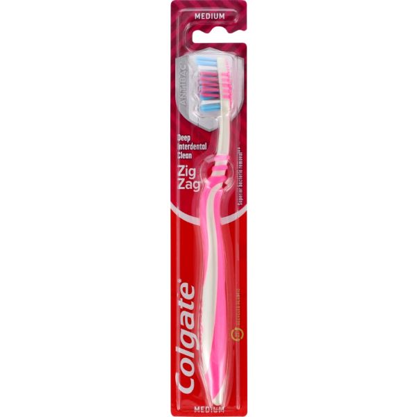 Colgate Zig Zag Medium tandbørste er designet til effektiv rengøring af tænder og tandmellemrum. De krydsede børstehår hjælper med at nå ind mellem tænderne og fjerne plak, så du opnår en grundig og frisk mundhygiejne.
