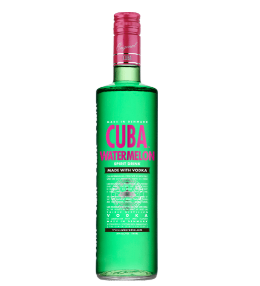 Cuba Watermelon er lavet på den fineste, rene vodka, der er destilleret tre gange, så du kan nyde den lækre smag af vodka, uden at smagen bliver sprittet. Vodkaen er afstemt med en dejlig smag af en modne, saftige vandmeloner.