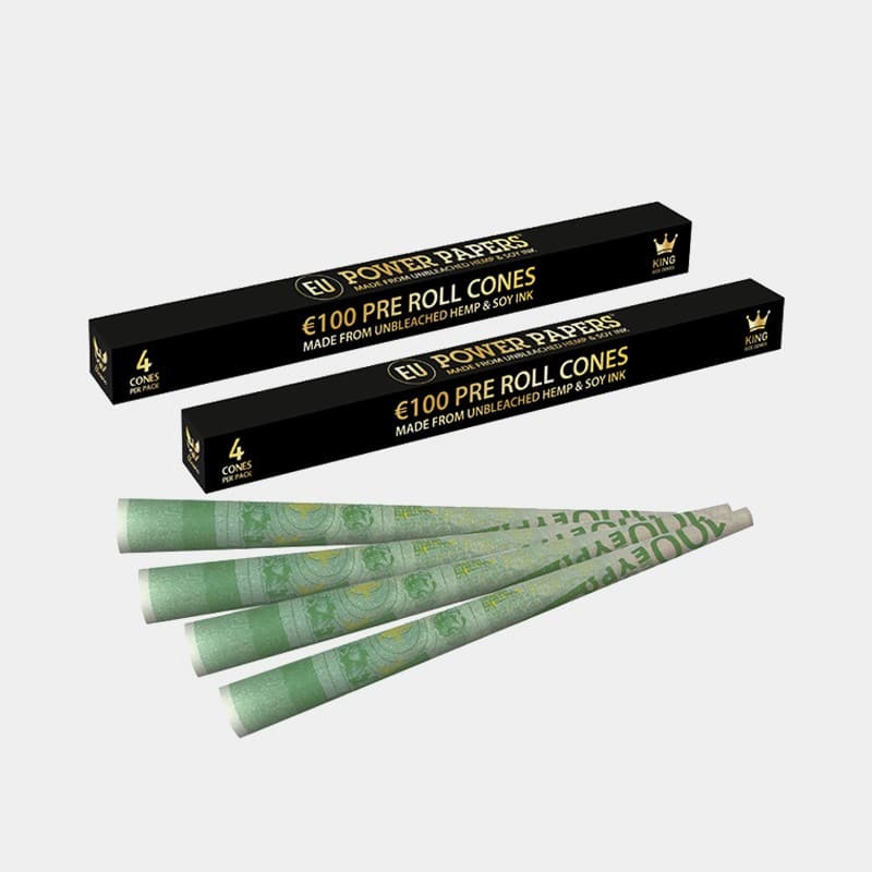 Disse fuldfarvetrykte færdigrullede cones og skarpt detaljerede kant-til-kant-design er lavet ved hjælp af 100 % økologisk ubleget hamp af højeste kvalitet med 100 % naturlig sojablæk.