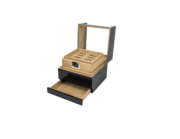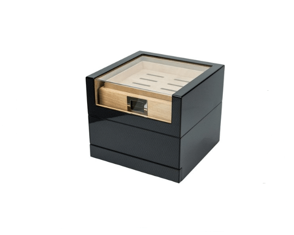 Humidor m/Kulfiberfinish og Akrylplade til Ca 50 Cigar