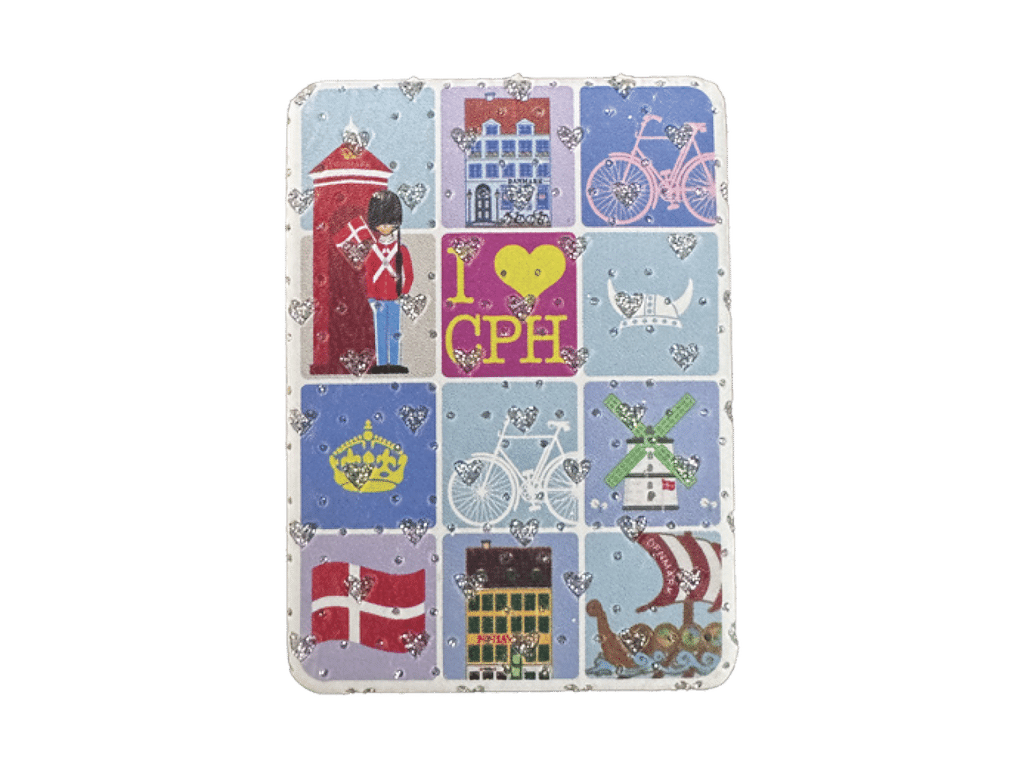 Vis din kærlighed til København med denne elegante souvenir-magnet. Designet kombinerer det ikoniske I ♥ CPH-motiv med funklende rhinestones, der giver et glitrende og stilfuldt udtryk. Perfekt som gave, minde eller til at pynte køleskabet, opslagstavlen eller enhver magnetisk overflade.