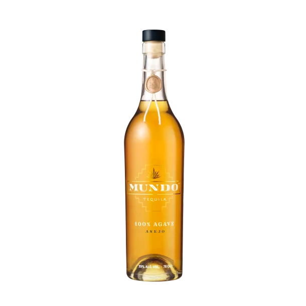 Mundo Tequila er en luksuriøs tequila fremstillet i Mexico og har en renhed af agave på over 70%, hvilket er højere end i mange andre tequilaer. Det giver en fyldig og kompleks smag med en blød og afbalanceret afslutning. Smagen kombinerer kraftige, krydrede noter med en sød undertone. Tequilaen er lagret på egetræsfade, hvilket tilføjer en afrundet nuance til den strålende stråfarvede klarhed og dybden i den kobberfarvede gyldenhed. Den er fremstillet uden kunstig gær og destilleret med vulkansk kildevand.