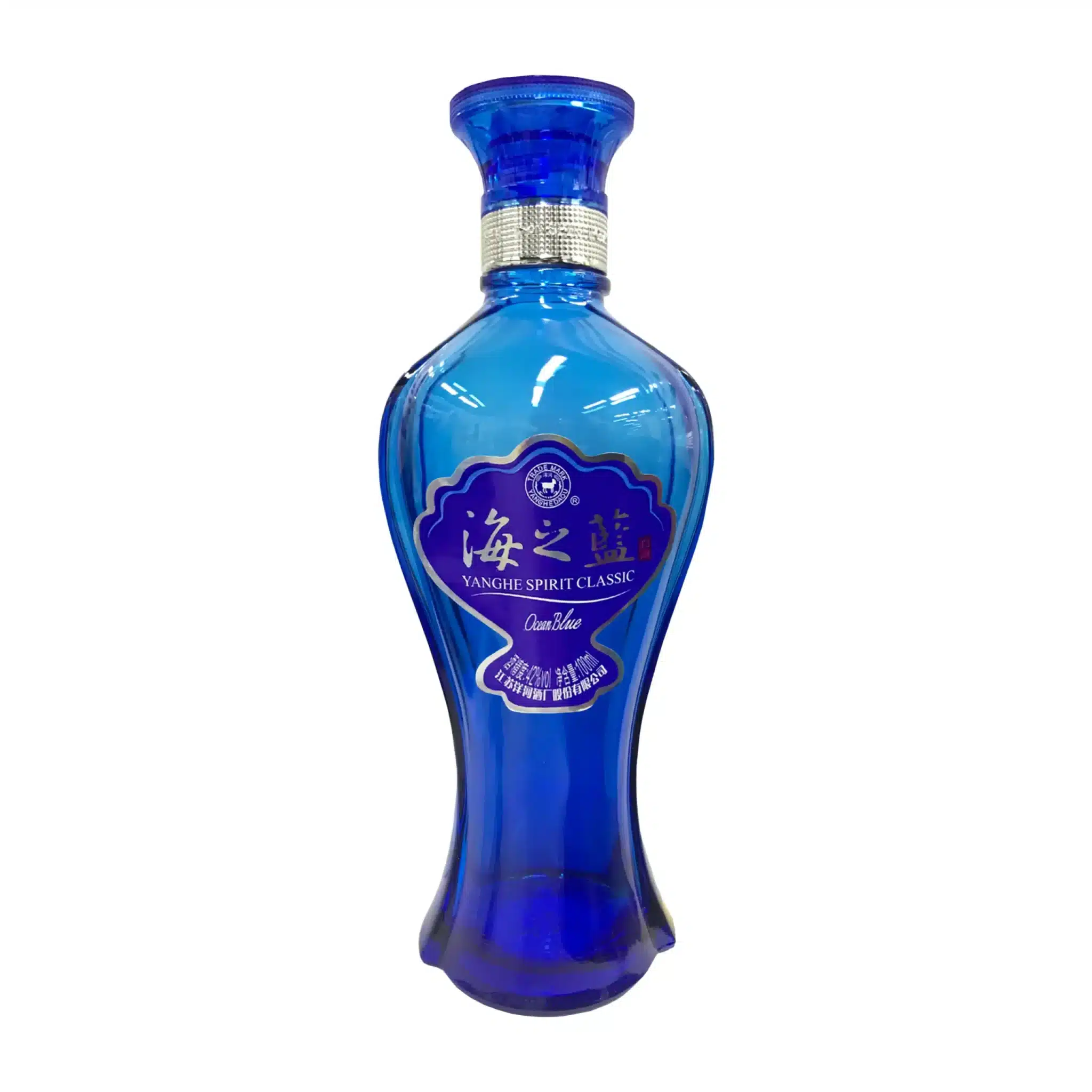 Med denne Ocean Blue baiju har Yanghe skabt et produkt, der transporterer dig til hjertet af havet med sin smukke lille dybblå flaske.