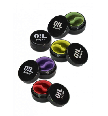 Oil Black Leaf® plastbeholder med 2-kammer aftagelig indsats lavet af fødevaresikker silikone i forskellige farver til sikker opbevaring af klæbrige ekstrakter.