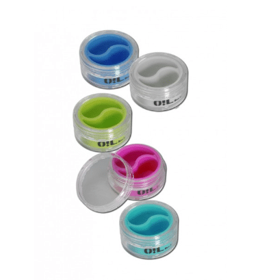 Oil Black Leaf® plastbeholder med 2-kammer aftagelig indsats lavet af fødevaresikker silikone i forskellige farver til sikker opbevaring af klæbrige ekstrakter.