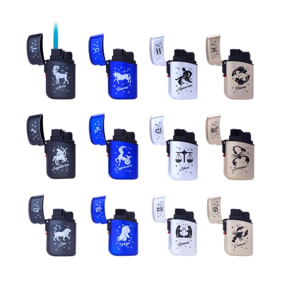 Prof Astro Signs Blueflame Stormlighter er en unik stormlighter med kraftig blå jetflamme og kosmisk design med stjernetegn (astro signs). Lighteren er ikke kun visuelt tiltalende – den er også funktionel, pålidelig og vindresistent, hvilket gør den perfekt til både rygere og outdoor-entusiaster.