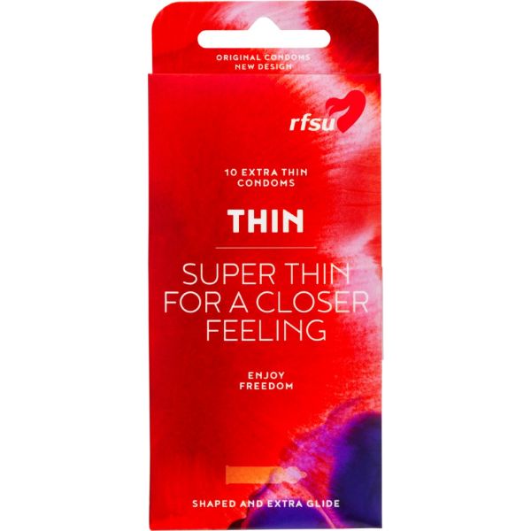 RFSU Thin kondomer er designet til at give en mere naturlig og følsom oplevelse uden at gå på kompromis med sikkerheden. De ekstra tynde kondomer giver øget nærhed, samtidig med at de yder effektiv beskyttelse.