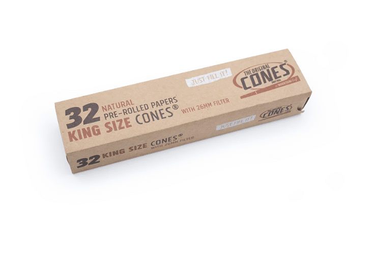 Pakket i en praktisk slidebox indeholder 32 King Size Cones.