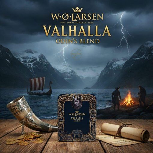 Oplev den legendariske smag af W.Ø. Larsen Valhalla Odin’s Blend, en eksklusiv årgangsudgave fra 2026, skabt til ægte pipekendere. Denne limited edition pipeblanding hylder den nordiske mytologi og Danmarks stolte tobaksarv med en harmonisk sammensætning af fire udsøgte tobakstyper: