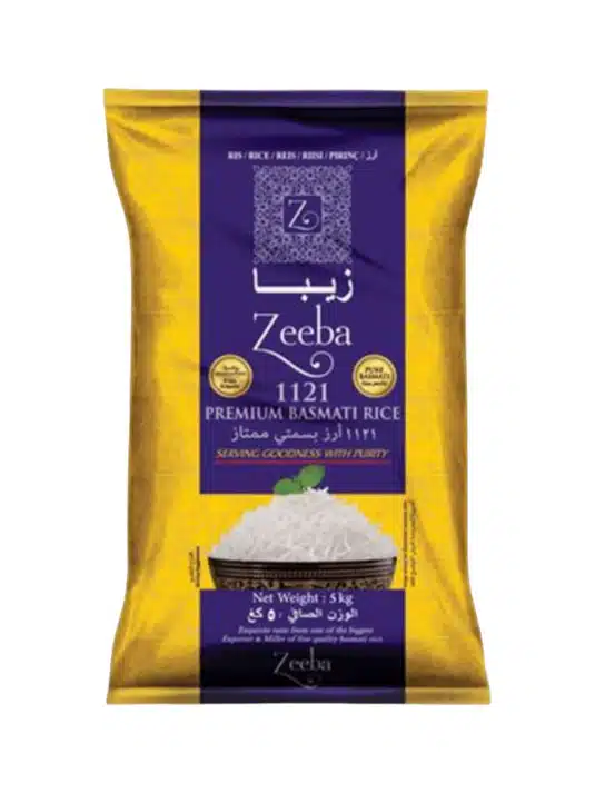 Zeeba 1121 Premium Basmati Ris er kendt for sin ekstra lange kornlængde, delikate aroma og udsøgte smag. Denne basmatiris er naturligt dyrket ved Himalayas fod og er GMO-fri, hvilket sikrer et autentisk og sundt produkt.