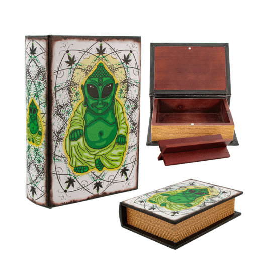 Alien Buddha Stash Book Small är både praktisk och dekorativ – en perfekt kombination av säker förvaring och kreativ design.