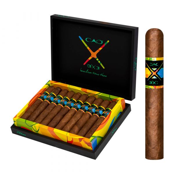 CAO BX3 Robusto-cigarren ger dig en unik rökupplevelse med tre brasilianska tobaksblad (Brazil x 3 = BX3). Omslaget är ett mörkt, och ack så fett, brasilianskt Mata Fina-blad, bindemedlet är brasilianskt Arapiraca och fyllningen innehåller lite mer brasilianskt Mata Fina. BX3-fyllningen består också av en komplex blandning av nicaraguansk, honduransk och mexikansk tobak.