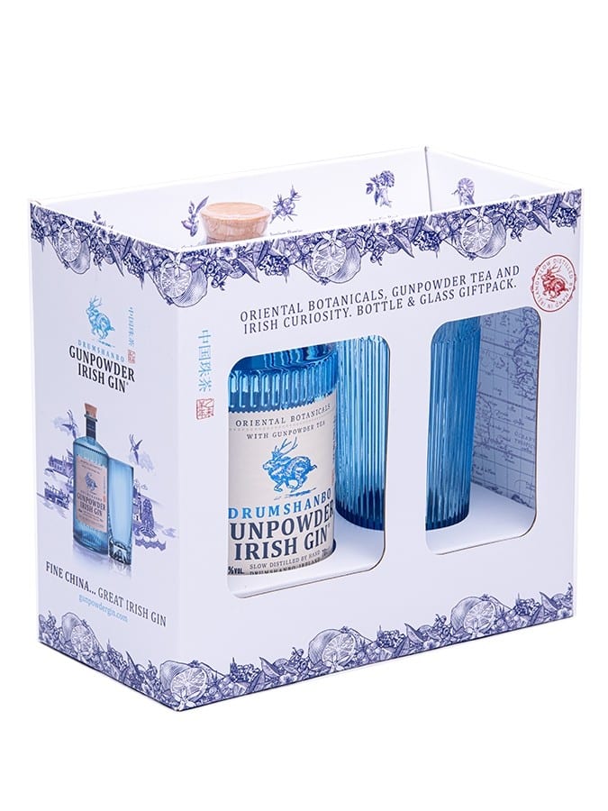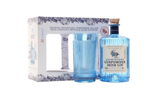 Drumshanbo Gunpowder Irish Gin är en extraordinär irländsk gin som levereras i en presentförpackning med ett iögonfallande blått glas som matchar den vackra flaskan – perfekt för att servera en gin & tonic, till exempel.