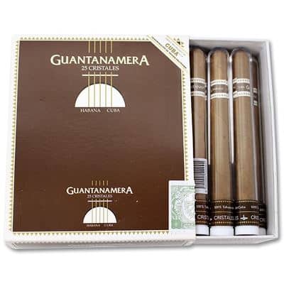 Guantanamera Cristales Cigar 1 bitProduktbeskrivning: Längd: 5 7/8″ Ringmått: 41 Styrka: Lätt Vitola: Cristales Röktid: 60 minuter Guantanamera-serien innehåller lätta maskintillverkade cigarrer med kort fyllningstobak från den mindre Vuelta Arriba-regionen. Guantanamera-cigarrer har förskurna huvuden, en cigarrskärare krävs inte.