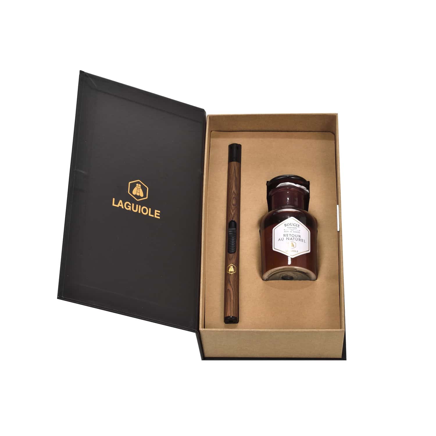 Laguiole Gas Torch & Scented Candle är en present eller mysig produkt som vanligtvis kombinerar en gasfackla (tändare/gasbrännare) med ett doftljus. Setet används både för praktiska ändamål och för stämningsfull heminredning.