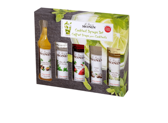 Monin Cocktail Set Syrup 5 X 5 Cl ger dig ett urval av fem klassiska siraper i praktiska 5 cl-flaskor, perfekt för att utforska olika smaker och skapa cocktails hemma. Med smaker som Mojito Mint, Grenadine och Passion Fruit är setet perfekt för både nybörjare och erfarna bartenders. Gör det enkelt att imponera på dina gäster med professionella drinkar.