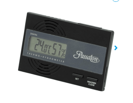 Passatore-hygrometern har en magnetisk hållare och ett stativ på samma gång, så den passar i alla humidorer. Displayen kan visas i °C och °F.