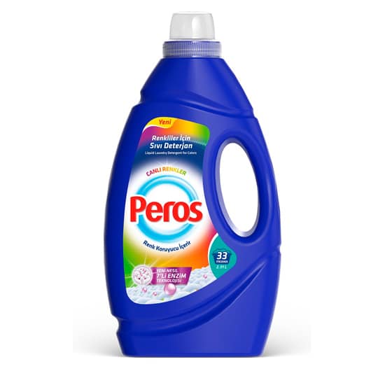 Peros Liquid Detergent Color med 7 enzymer är utformad för att effektivt rengöra och bevara färgerna i dina färgade tyger. Denna innovativa formula är speciellt utformad för att ta bort fläckar och smuts utan att påverka färgens klarhet, vilket säkerställer att dina kläder förblir ljusa och fräscha tvätt efter tvätt. Den flytande formulan löses snabbt upp i vatten och ger en jämn fördelning för optimalt resultat. Med en praktisk 2,3-litersflaska är det perfekt för både vardagsbruk och större tvättprojekt. Tvättmedlet är skonsamt mot kläderna och effektivt mot även de mest envisa fläckarna.