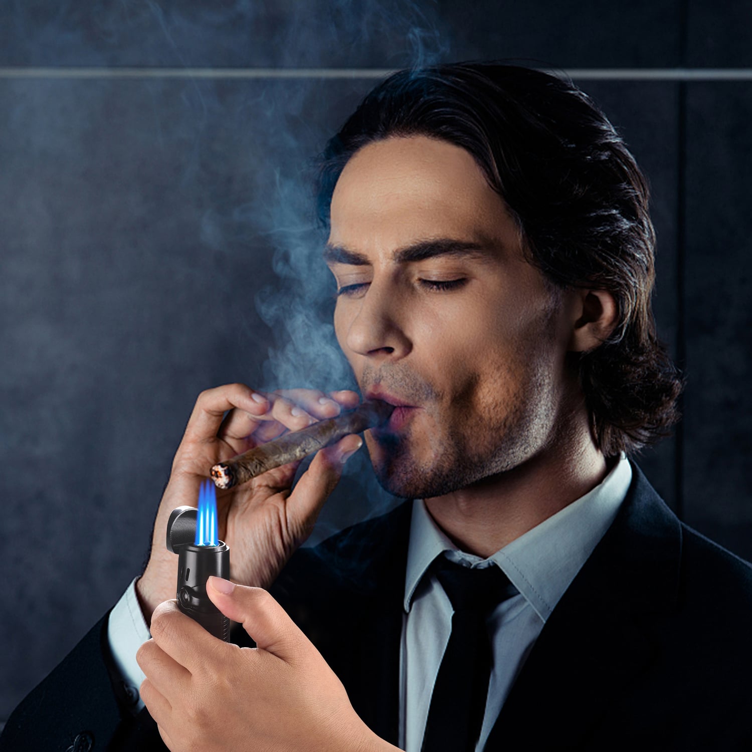 Tänd cigarren jämnt med de två jetflammorna genom att rotera den långsamt