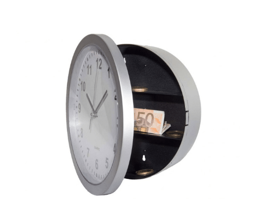Denna väggklocka är perfekt för hemmet, kontoret eller andra rum där du vill ha extra säkerhet på ett snyggt sätt. Den dolda förvaringen gör det möjligt att förvara små värdesaker, smycken, nycklar eller pengar utan att väcka misstankar.