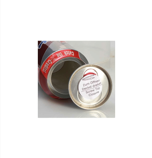 Detta är en gömd burk förklädd till ett tyskt öl- och coladrycksmärke.