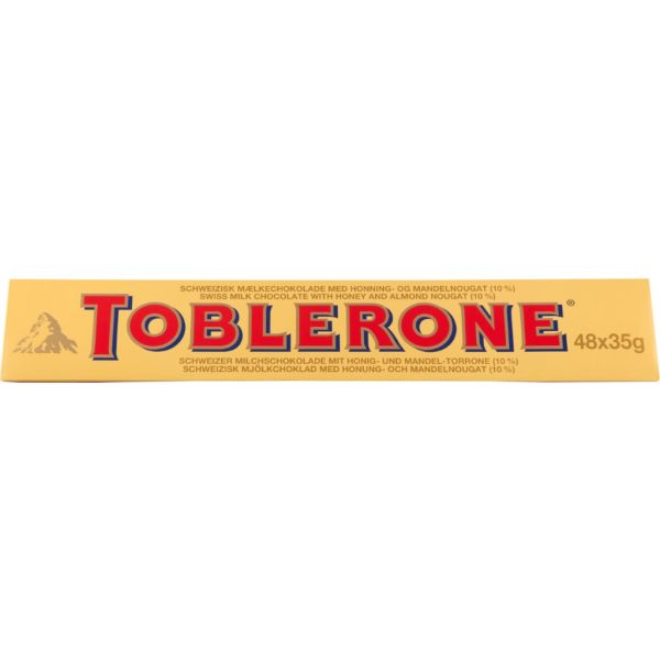 Möt Toblerone XL 1,68 kg – chokladlycka i stor skala! Detta gigantiska set innehåller 48 små Toblerone-bars på 35 g vardera, totalt 1,68 kg av den ikoniska triangulära chokladen med honung och mandelnougat. Perfekt att dela med sig av vid festliga tillfällen, som present eller bara när chokladbegäret verkligen behöver stillas.