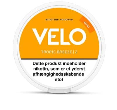 Velo Tropic Breeze har smak av mandarin, passionsfrukt och mango. Nikotinportionerna innehåller inte tobak och är därför inte snus. Nikotinpåsar i ett mindre format.