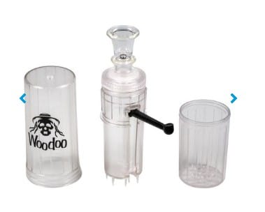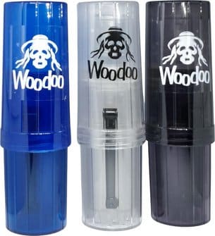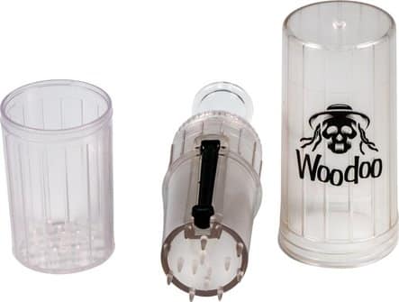 Woodoo har något nytt! Den här lilla lådan ryms i vilken väska som helst och följer med dig på alla resor. När du har nått din destination behöver du bara skruva av locket för att avslöja chillum i borosilikatglas. Fäll bara ut det svarta munstycket och bongen är redo att frammana den perfekta rökupplevelsen – var du än befinner dig! För att du inte ska behöva ta med dig något annat finns det en kvarn integrerad i botten av bongen som maler dina örter åt dig.