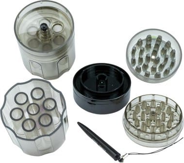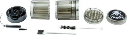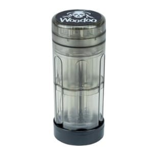 Woodoo plastkvarn 5 delar Ø72 mmProduktbeskrivning: Woodoo kvarn med integrerad konformare och fyllningssystem är enkel att använda och gör det till en riktig upplevelse att vrida koner. Upp till 6 kottar kan fyllas med örtblandningen samtidigt. Kvarnen kan också användas separat. PRODUKTDATA: – Ø 72 mm – 6 st – Med koner lutande